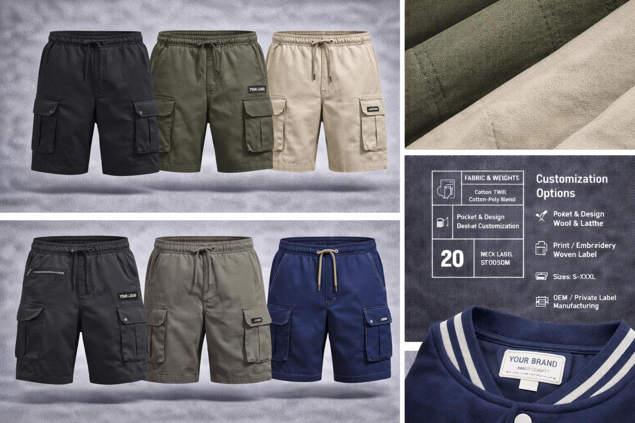 Premium custom cargo shorts designed for streetwear brands, casual wear collections, and bulk buyers. Durable fabrics, functional pockets, and full private label customization.